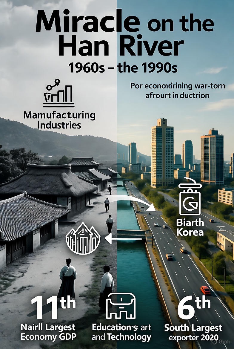 From the 1960s to the 1990s, South Korea transformed from a poor, war-torn country into an industrial and technological powerhouse. This period, known as the “Miracle on the Han River,” saw rapid growth in manufacturing, education, and global trade.