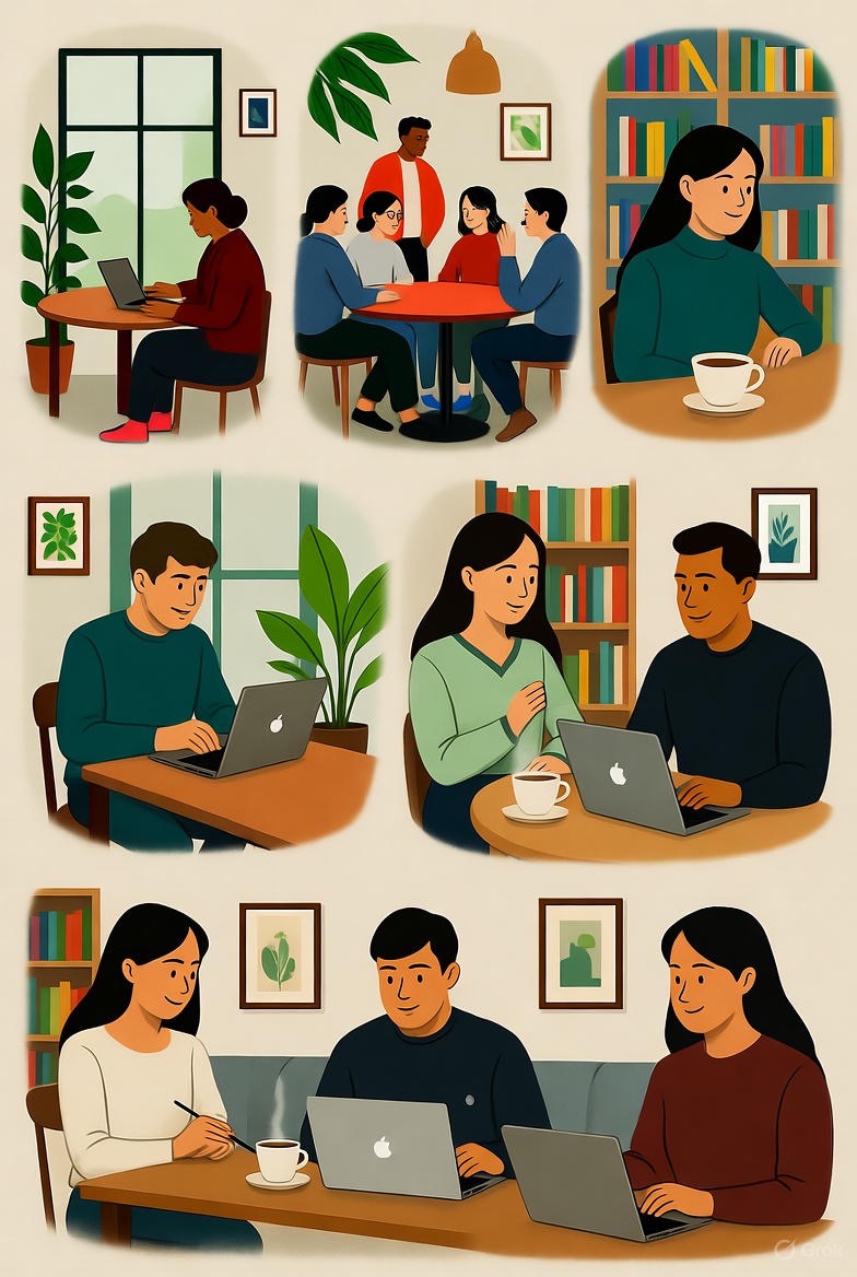 Cafés are social spaces — people go for study, work, or to meet friends; themed cafés are also popular.