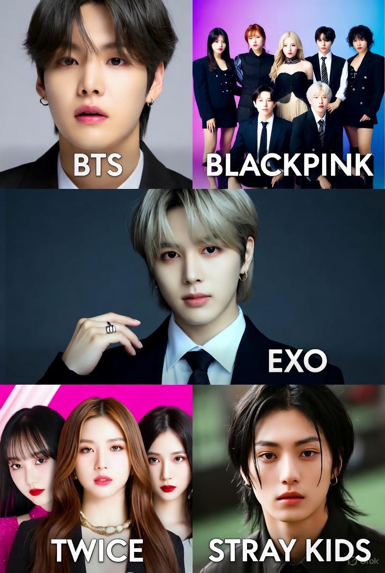 BTS, BLACKPINK, EXO, TWICE, and Stray Kids.