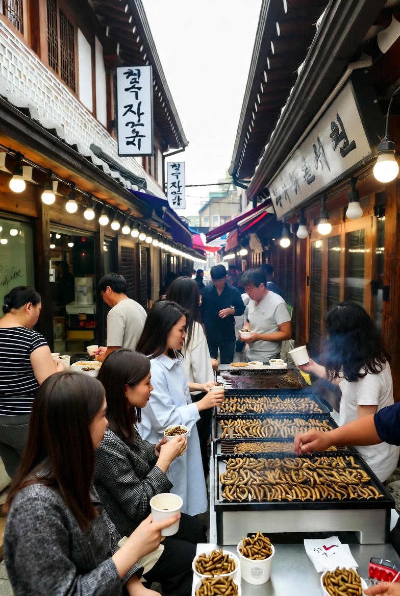 In the narrow alleys of old Seoul, surrounded by the sounds of street vendors and the aroma of sizzling food, there’s one distinctive scent that every Korean instantly recognizes — Beondegi, the silkworm pupae snack that has fed generations.